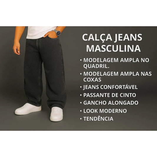 Calça Balão Jeans Masculina Bag Boca Larga Streetwear Reta